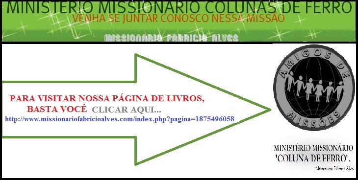 3º - Você deve visitar nossa página de LIVROS, pelo período de 40 segundos e deixar nela seu comentário, crítica e ou elogios. ( Lembramos que nessa página estará publicado propagandas e divulgação dos livros publicados pelo Missionário Fabricio Alves. Nessa página te convido a conhecer esses projetos literários - Lembramos ainda, que toda renda e verba adquirido através desses livros e e-books, é revertida para a manutenção desse site e dos projetos sociais de nosso Ministério... Só em nosso site, você pode ler um nom livro e ao mesmo tempo, ajudar a quem necessita.).